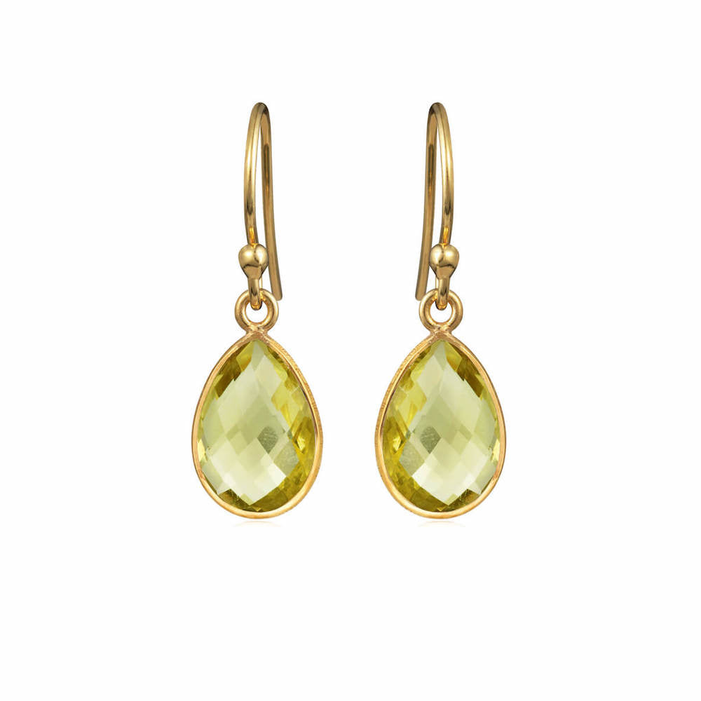 Dråbeøreringe m. lemon-kvarts, forgyldt