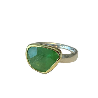 Ringen er håndlavet med en kraftig ringskinne i let-matteret sterlingsølv og en indfatning i 18 karat guld.