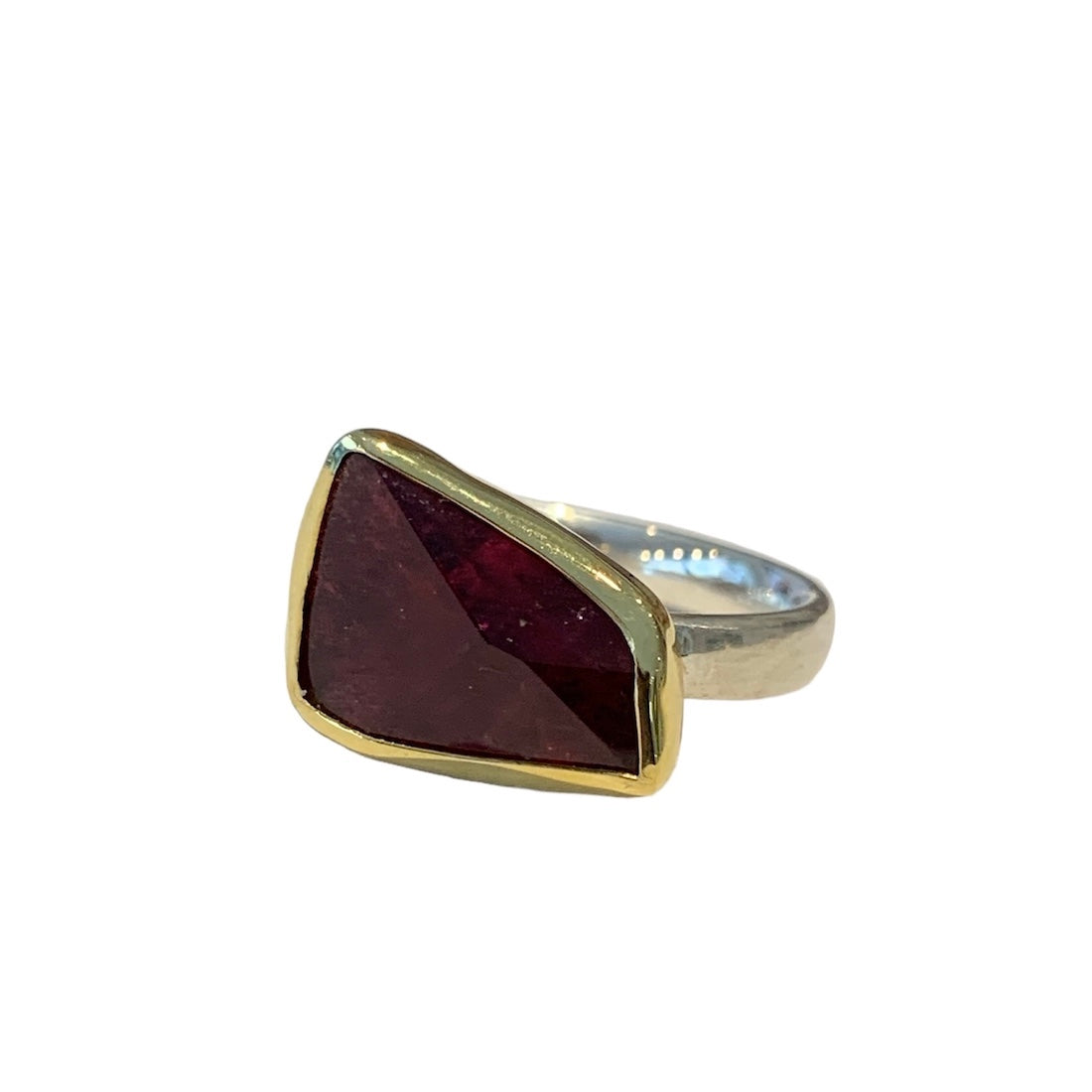 Smuk ring med en rød turmalin fra det græske værksted Margoni.