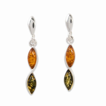 Ørehængere i sterlingsølv isat grønt og brunt rav.