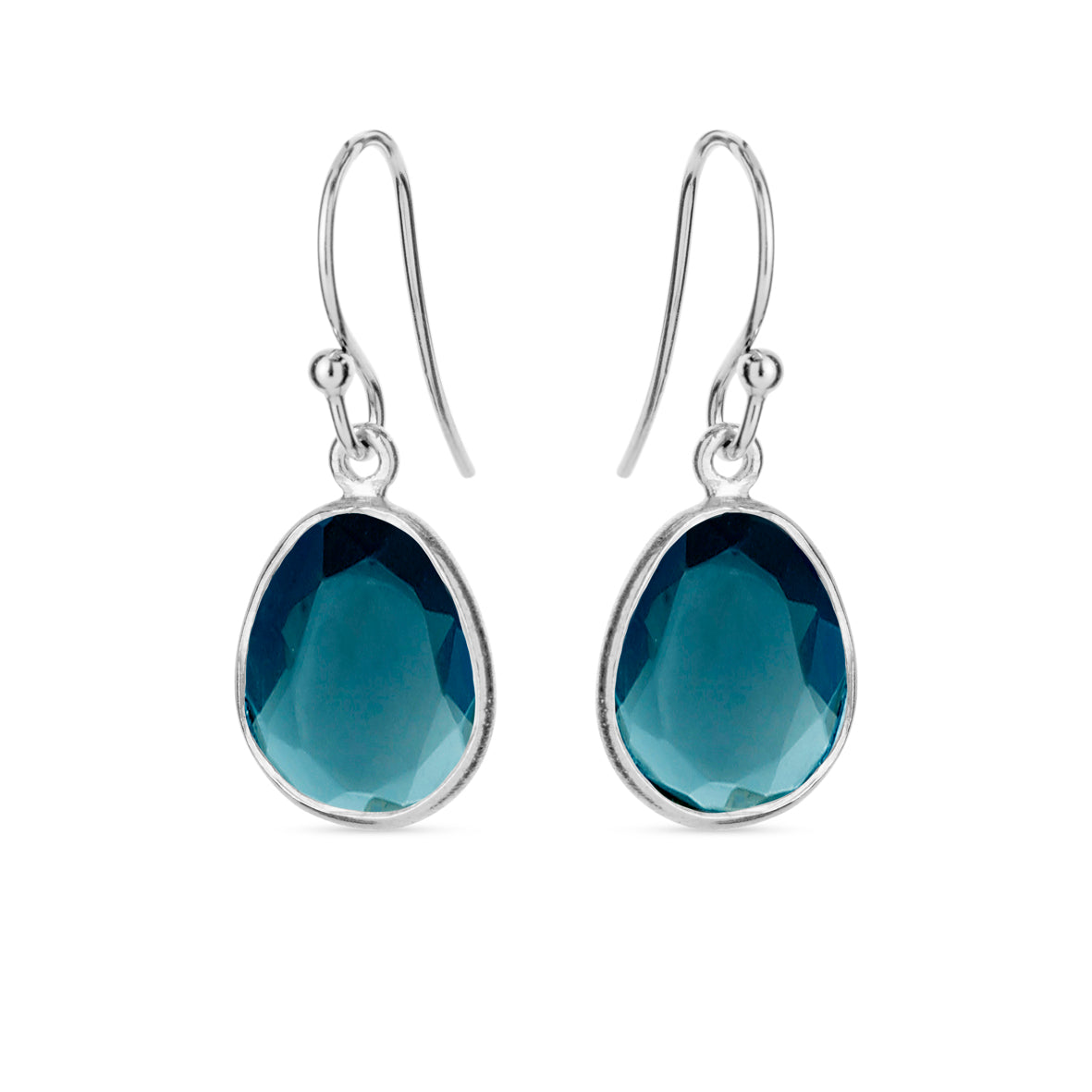 Øreringene er fremstillet i sterling sølv isat london blå krystal, som er facetslebet.