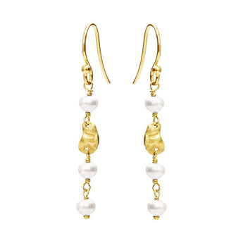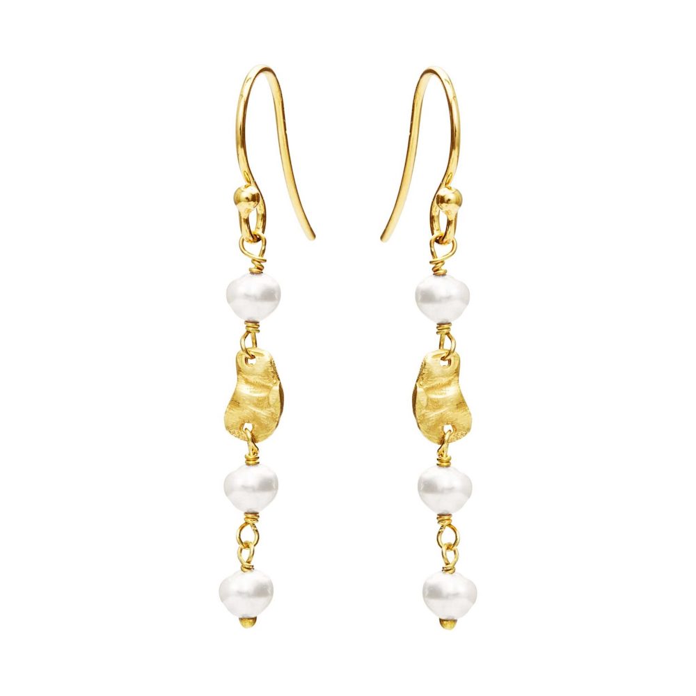 Hver ørehænger er prydet med små hvide ferskvandsperler og et forgyldt led.