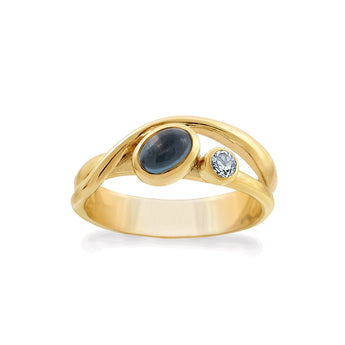 Ringen er fremstillet i forgyldt sterlingsølv og prydet med en London blå topas og en Sky blå topas.