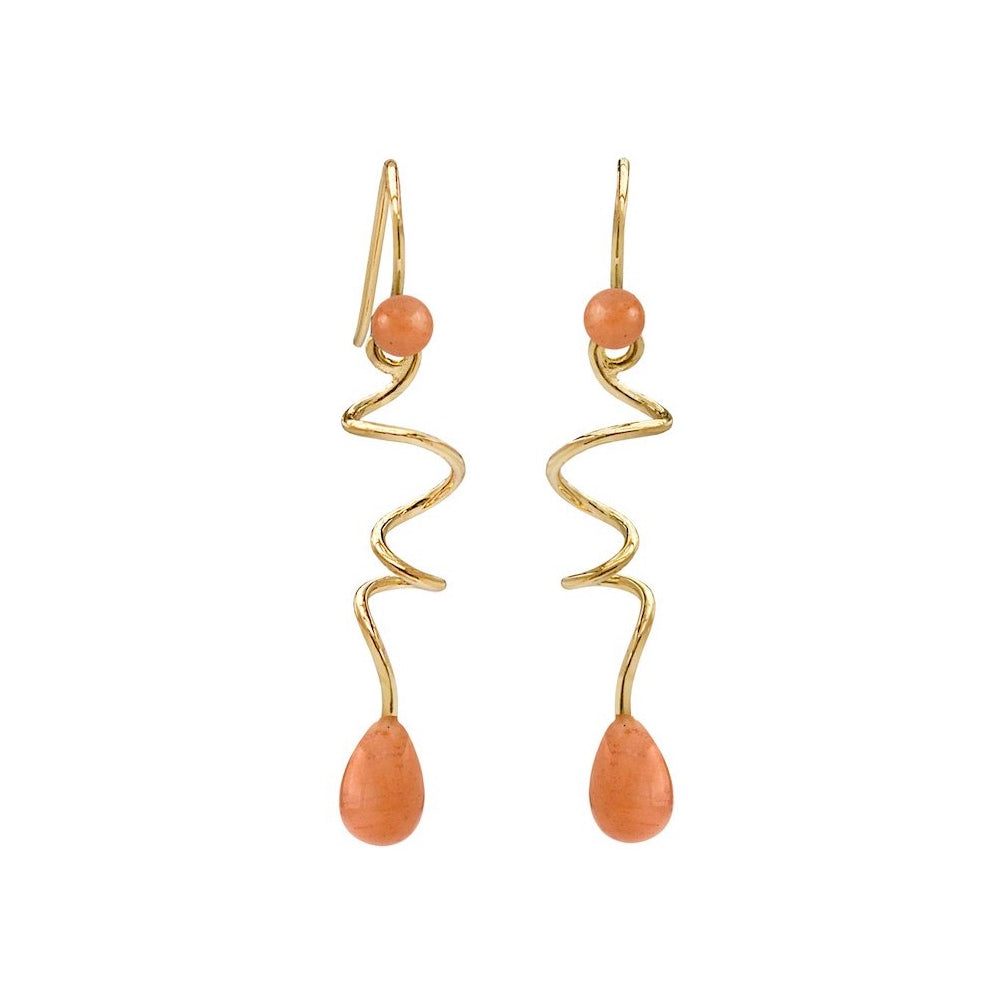 Ørehængerne er fremstillet i forgyldt sølv, hver med to ferskenfarvet aventurin.